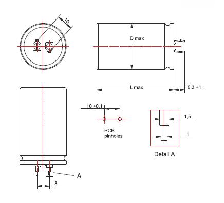 JJ Electronic Capacitor - radial lead with snap-in terminals. High quality, low ESR & leakage high voltage electrolytic capacitor suitable for use in any high voltage tube amp power supply. Rated for 500V and -30°C to 70°C operation