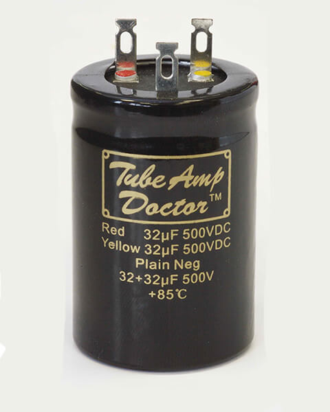 Perfect for use in Marshall, Orange, Hi-Watt and other amplifiers. These aluminum-cased capacitors are supplied with PVC sleeve insulation and a safety vent located on end deck.